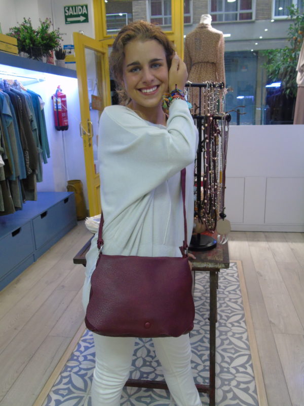Bolso pequeño bandolera, con solapa, con cremallera y compartimentos en el interior
