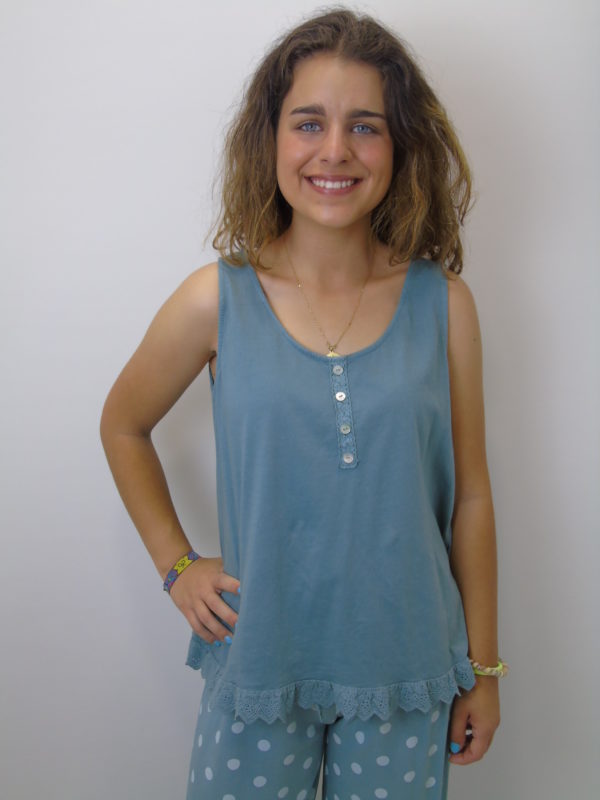 Camiseta verde sin mangas con encaje y botones