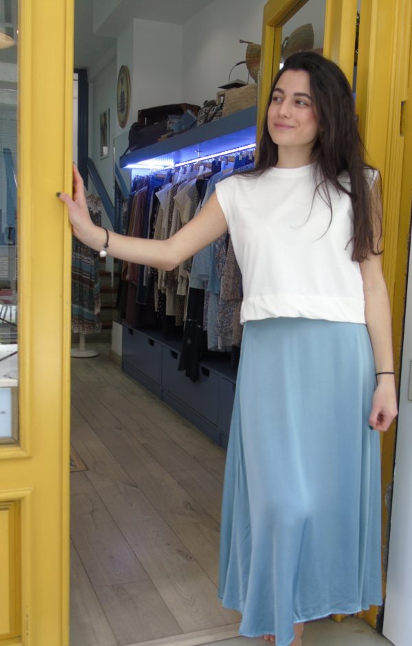 Falda larga efecto raso en verde agua