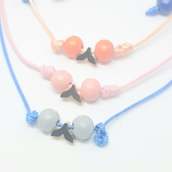 Gargantilla hecha a mano con un fino cordón en distintos colores y una cola de ballena de acero dorado
