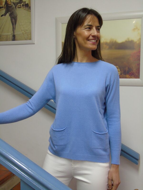 Jersey de punto con cuello a la caja y dos bolsillos. Talla única