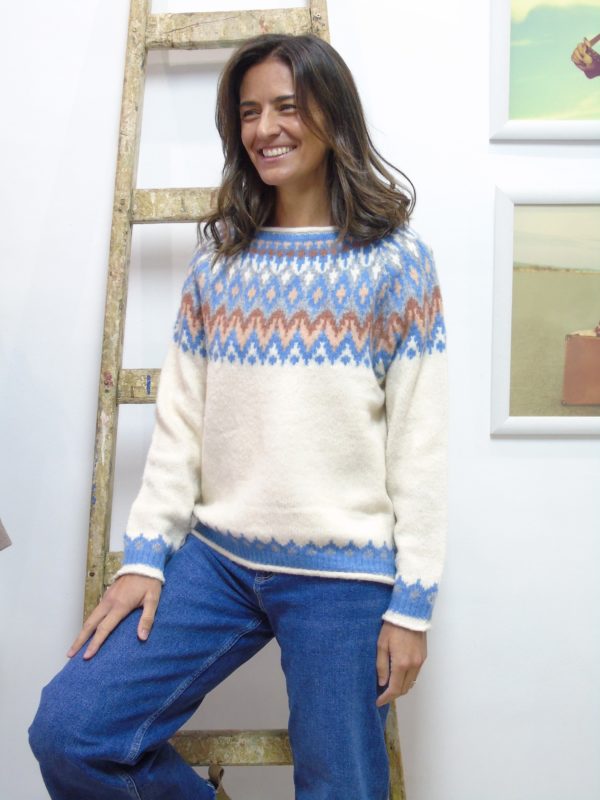 Jersey cuello a la caja con cenefa.