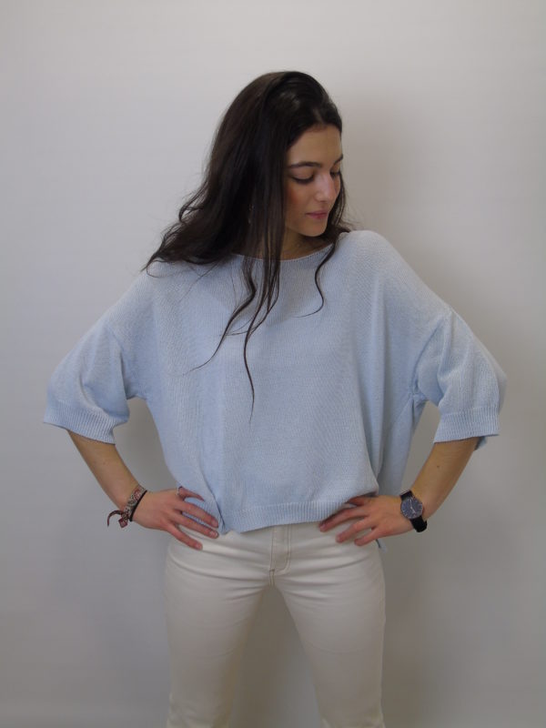 Jersey de punto fino, cortito y manga al codo.