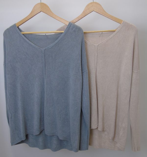 Jersey de punto primaveral, con cuello de pico y raya central