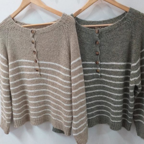 Jersey cuello barco con rayas y botones