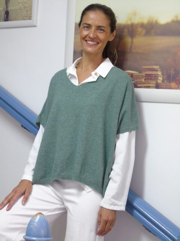 Jersey tipo poncho con escote en pico, sin mangas. Talla única