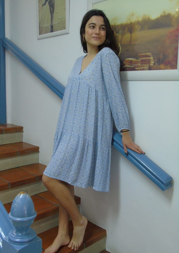 Vestido azul celeste con estampado de flores