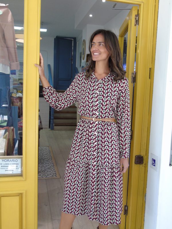 Vestido camisero largo estampado con botones (el cinturón no está incluido)