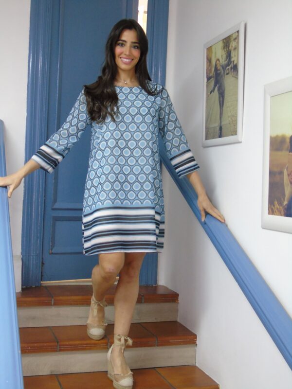 Vestido corto estampado con manga francesa. Talla única