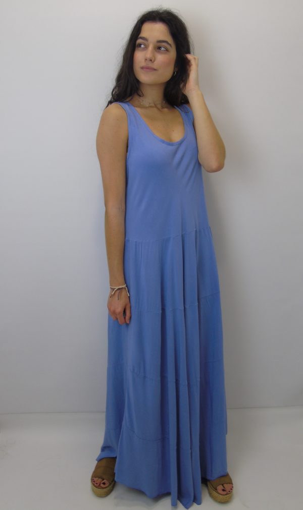 Vestido largo de tirantes en colores lisos. Blanco, azul y verde